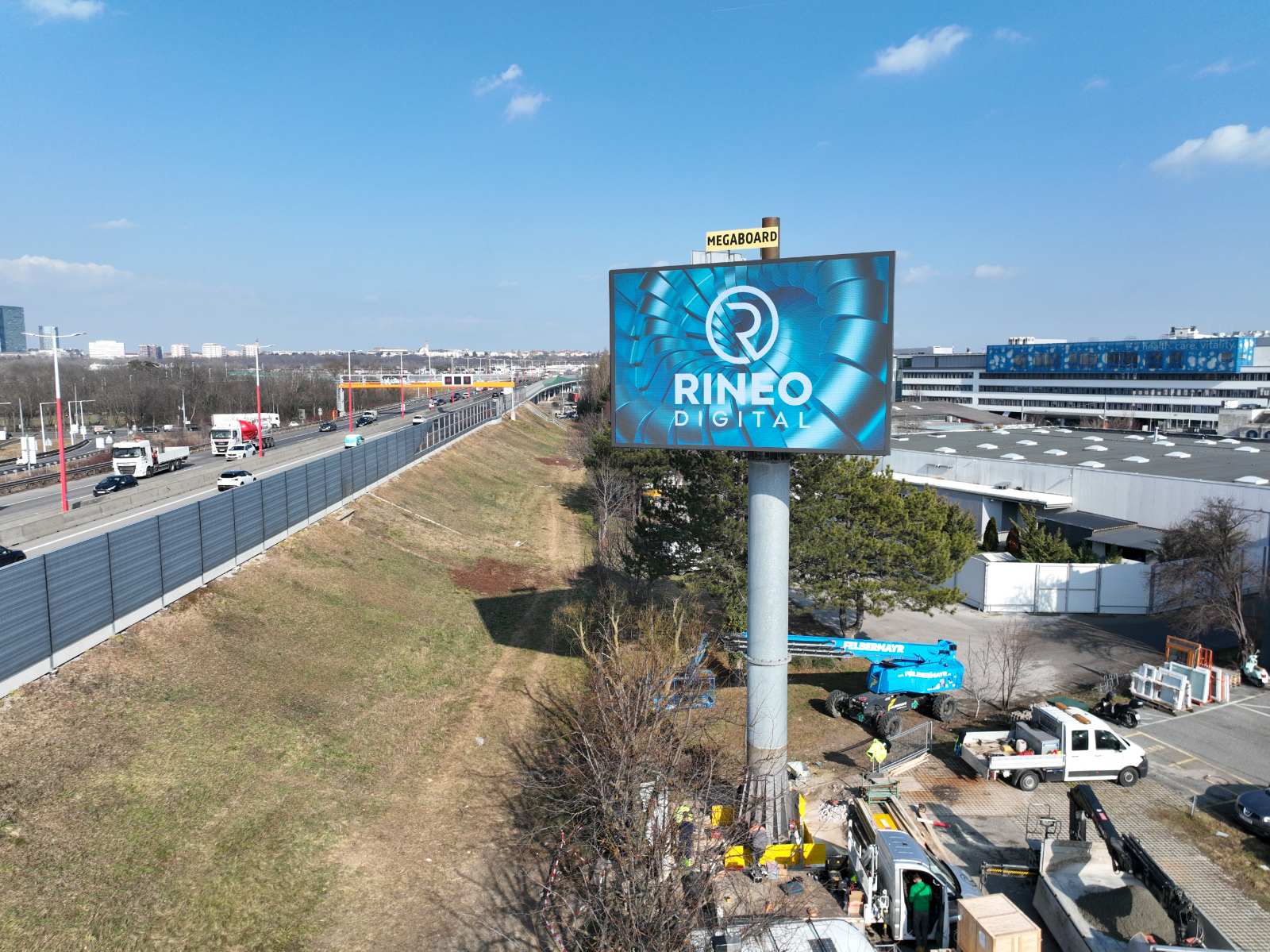 Uspješno završena proizvodnja i instalacija dvostrano osvijetljenog LED ekrana za austrijsku tvrtku Megaboard! Koristili smo Absen P6.6 A0624 Outdoor LED module (80 m²), sadržaj upravljan putem prilagođenog Nimote softvera. Još jedan impresivan projekt iza nas!
